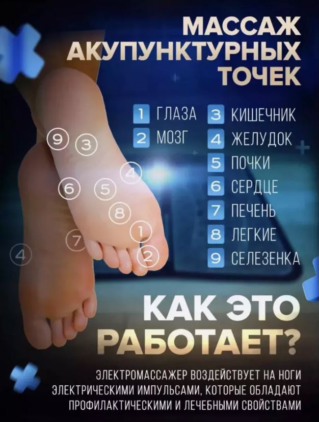 Представляем вам наш новый массажер для ног, который станет вашим личным спа-салоном прямо у вас дома! Электромассажер воздействует на ноги электрическими импульсами, которые обладают профилактическими и лечебными свойствами.